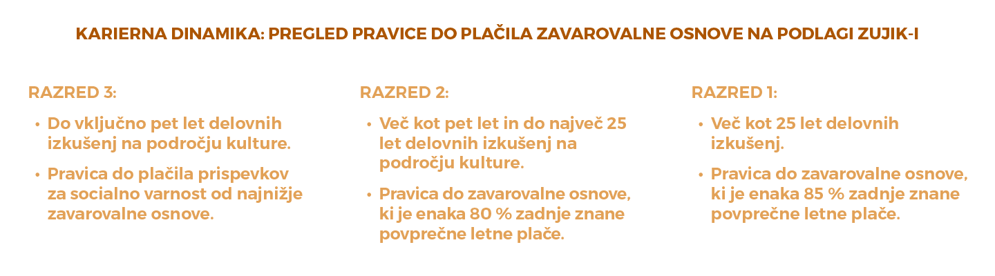 ZUJIK-I to ureja z uvajanjem tako imenovane »karierne dinamike«, ki samostojnega delavca v kulturi uvrsti v enega od 3 razredov, na podlagi te uvrstitve pa je usklajena tudi višina njihovih vplačil za socialne prispevke.